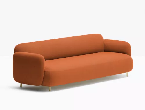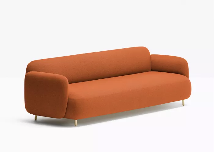 Deze reeks is ongelooflijk veelzijdig: hij is niet alleen verkrijgbaar met of zonder armleuningen en in verschillende kleuren en stoffen. Er kunnen ook meerdere zitmodules bij elkaar worden geplaatst. Een bijpassende poef werkt het geheel af.