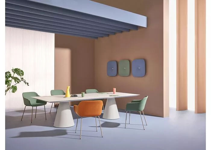 Ontdek de Snooze van Pedrali: het ultieme geluidsabsorberende paneel. Met een gestroomlijnd ontwerp, bestaande uit een kern van thermo-gevormde polyester vezels en een centraal metalen element voor eenvoudige montage. Het verwijderbare deksel biedt eenvoudig onderhoud en personalisatie met diverse kleuren en stoffen. Verbeter de akoestiek en voeg stijl toe aan elke ruimte met de Snooze van Pedrali.
